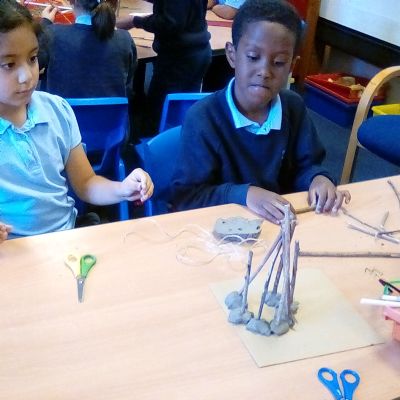 In History we made Mesolithic houses from clay, sticks, straw and animal skins to discover how people made dwelling in this era.